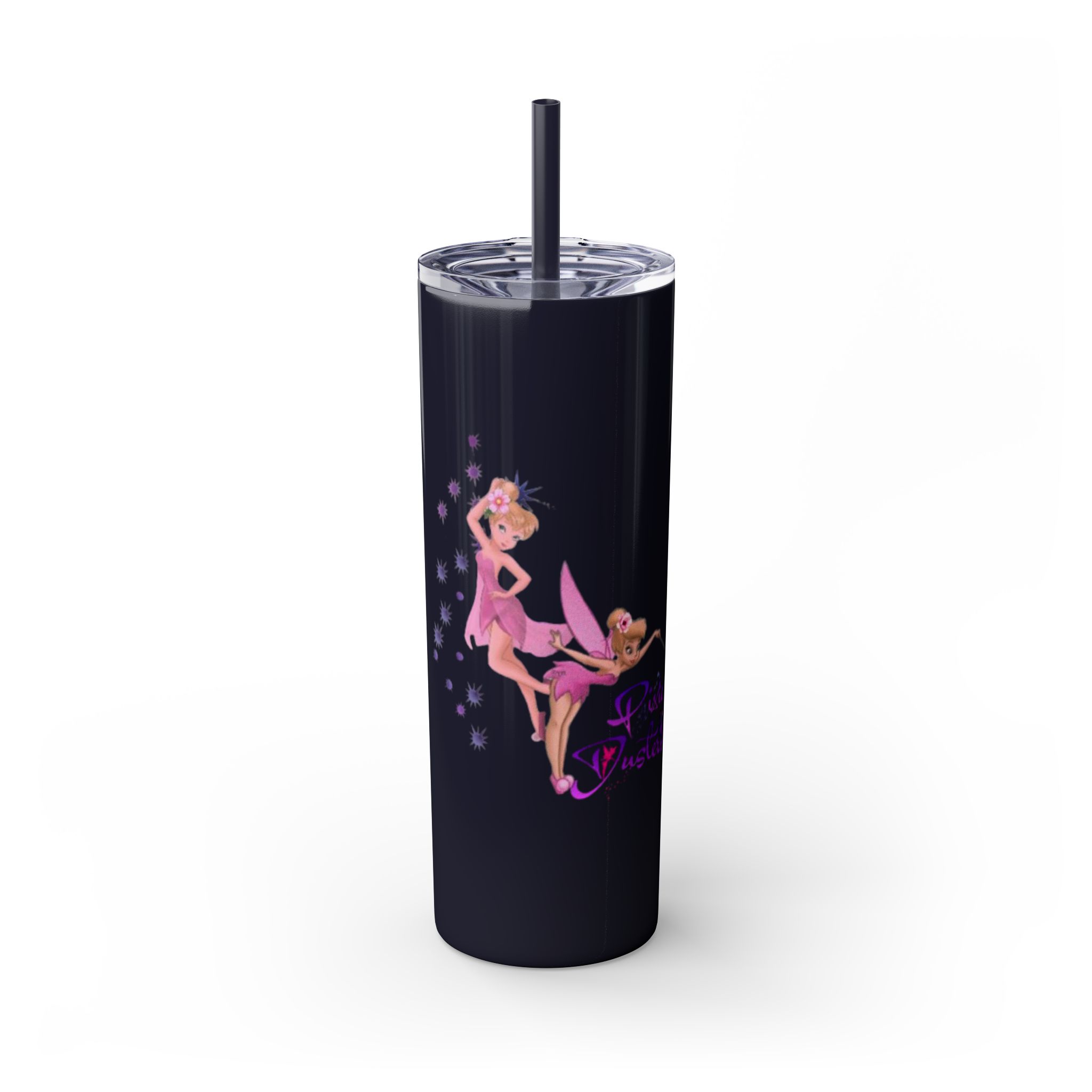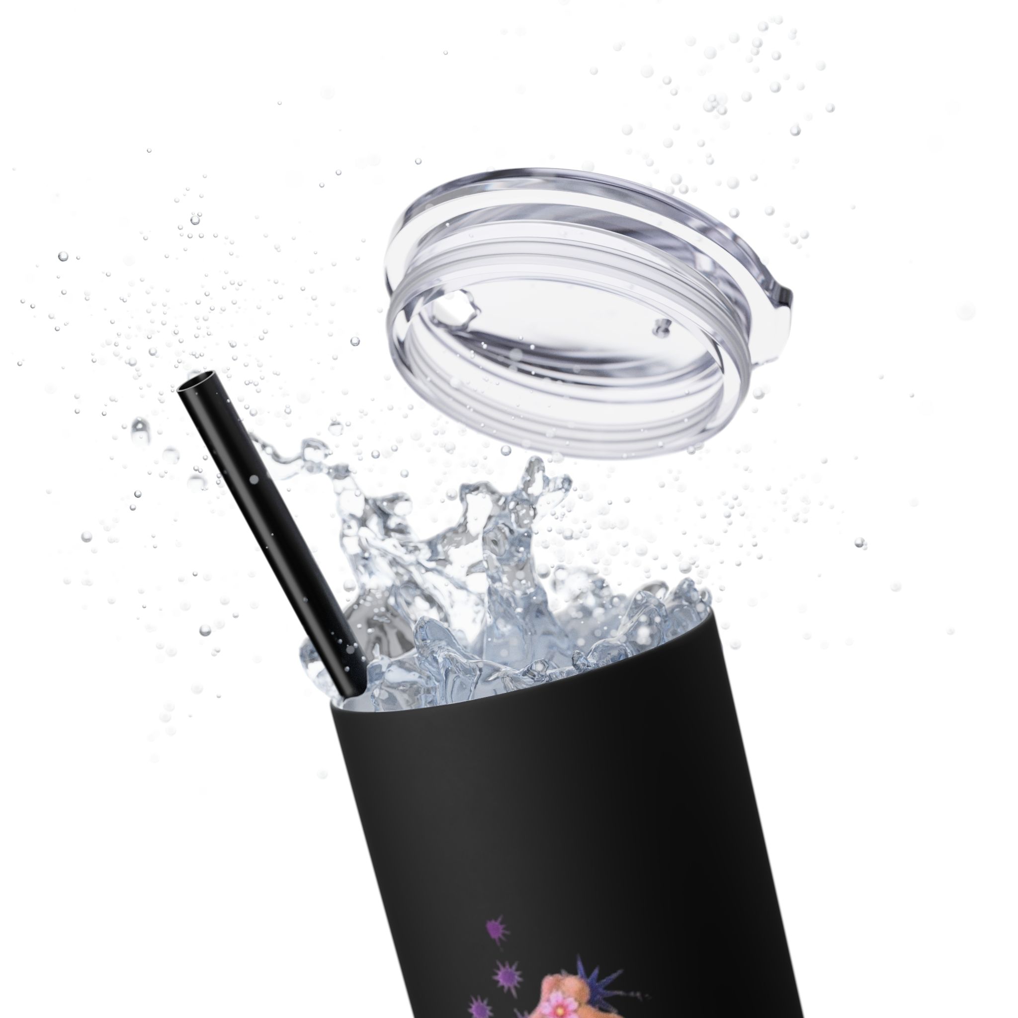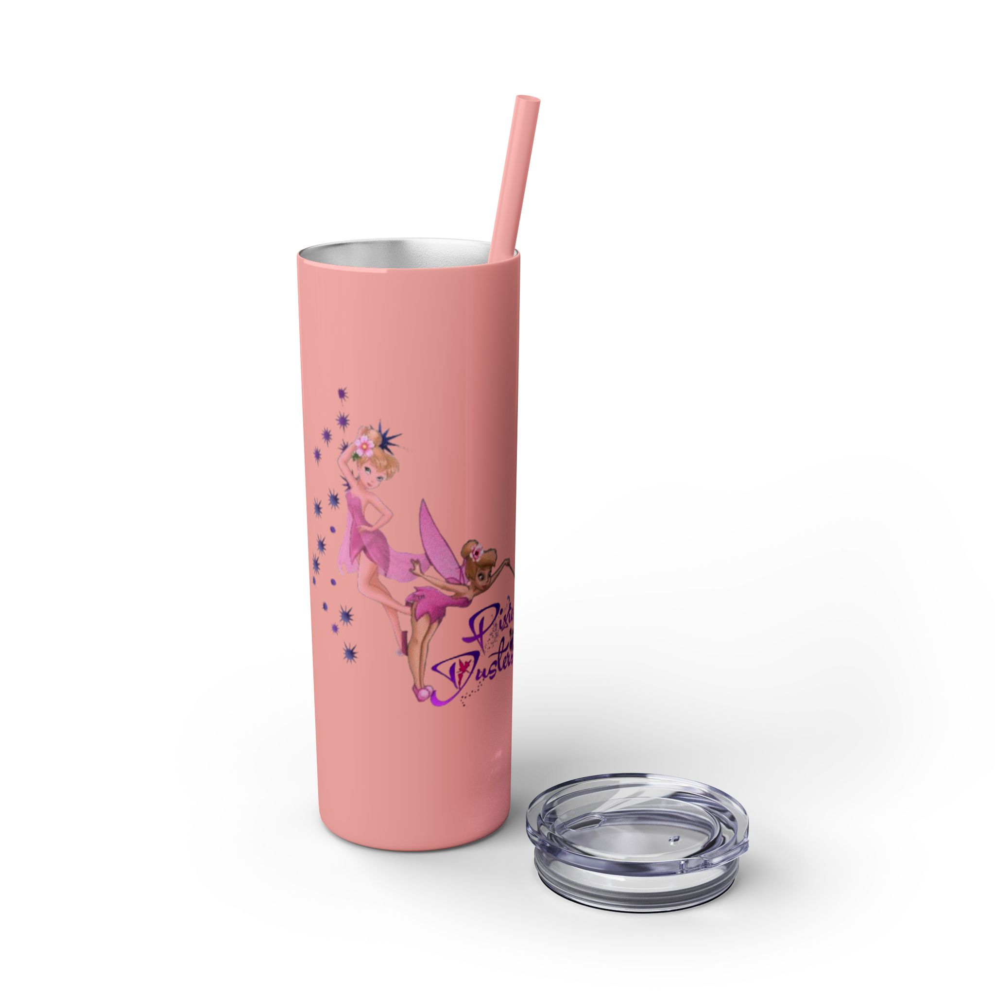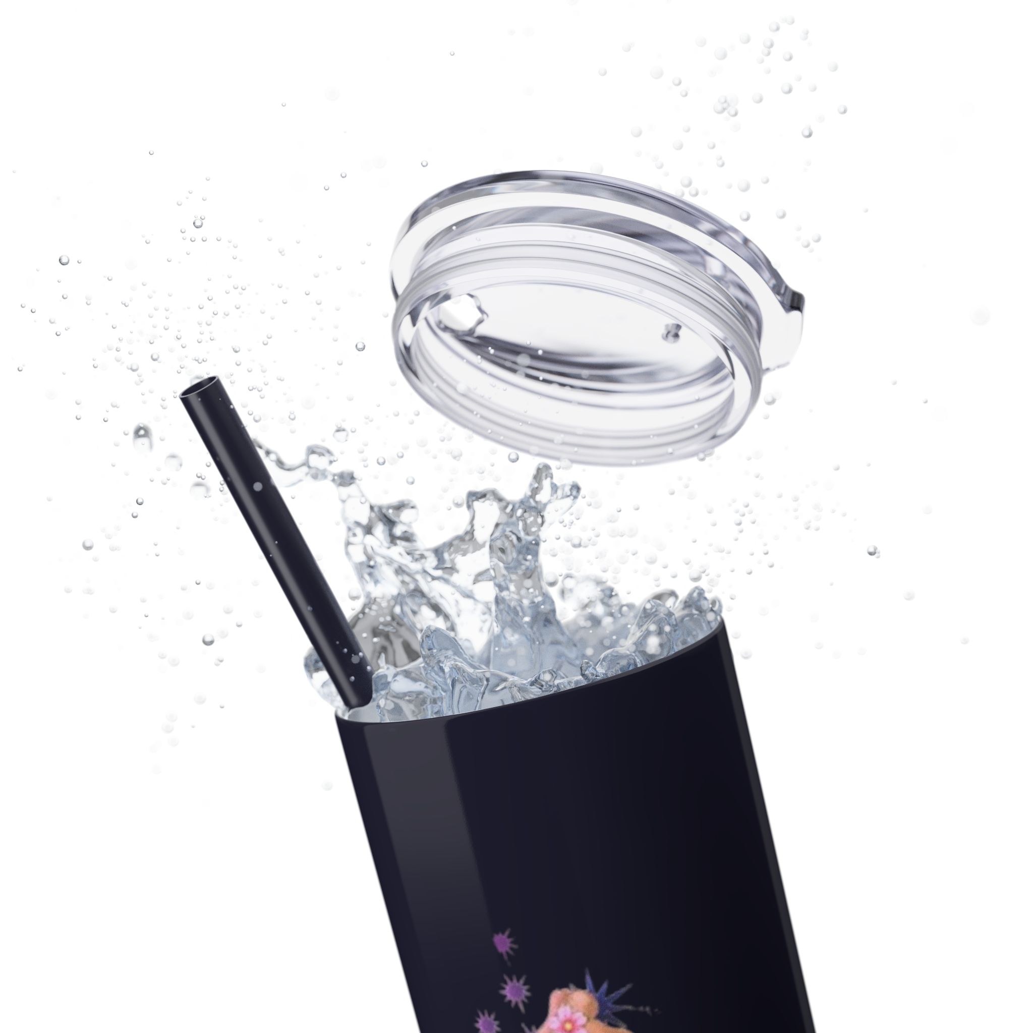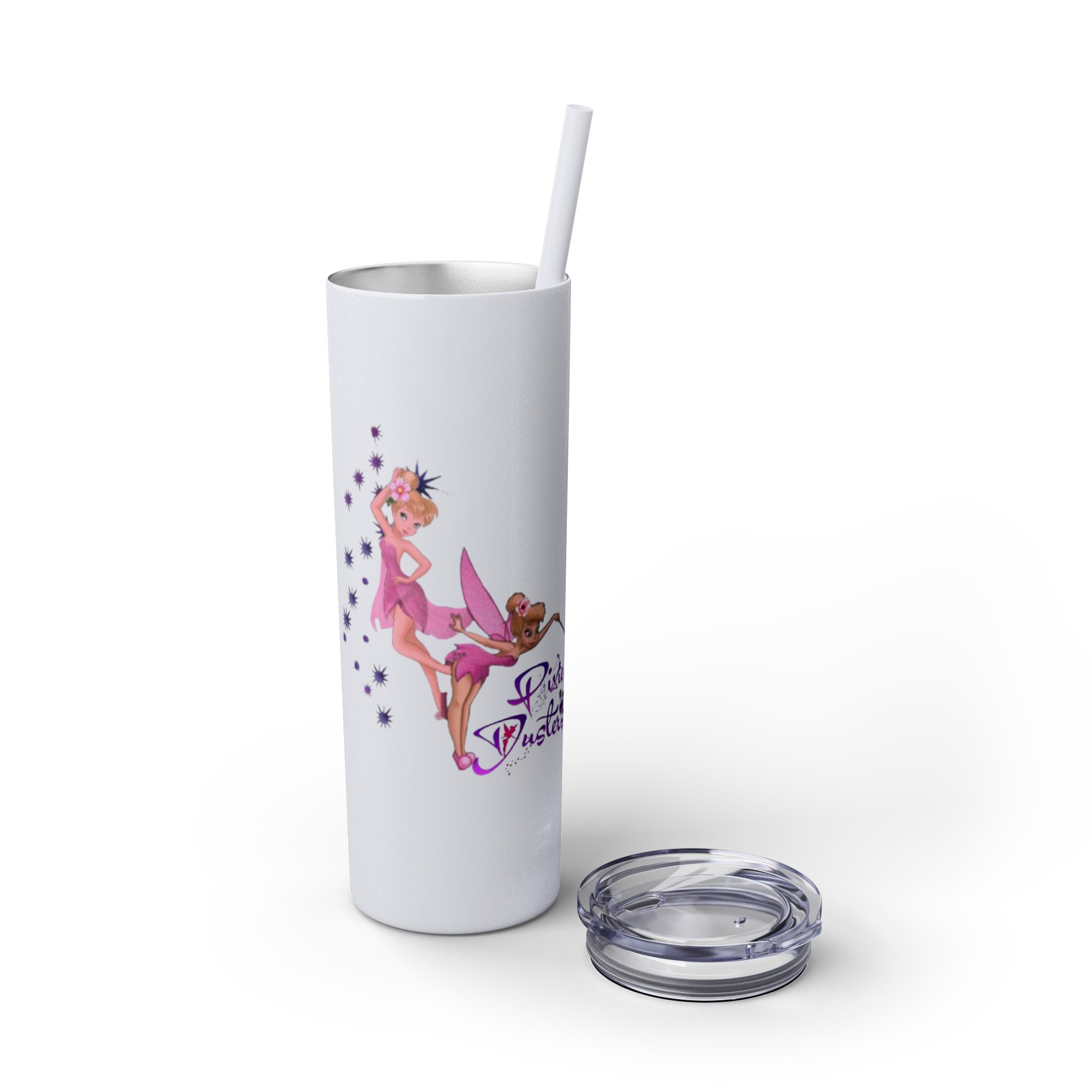 Slim, stainless steel tumbler wrapped in bright, playful artwork that brings a little sparkle to everyday sips. The tapered 20oz design slides easily into cup holders and bags, while double-wall insulation keeps drinks cold for up to 24 hours or warm for up to 12. A clear press-on lid and color-matching straw make sipping on the go simple and spill-conscious. Lightweight and durable, the tumbler’s matte or glossy powder-coated exterior holds vibrant printed colors true, and the slim profile is made for commuters, dancers, or anyone who loves a little retro-glam in their routine. Hand wash to preserve the print and finish.