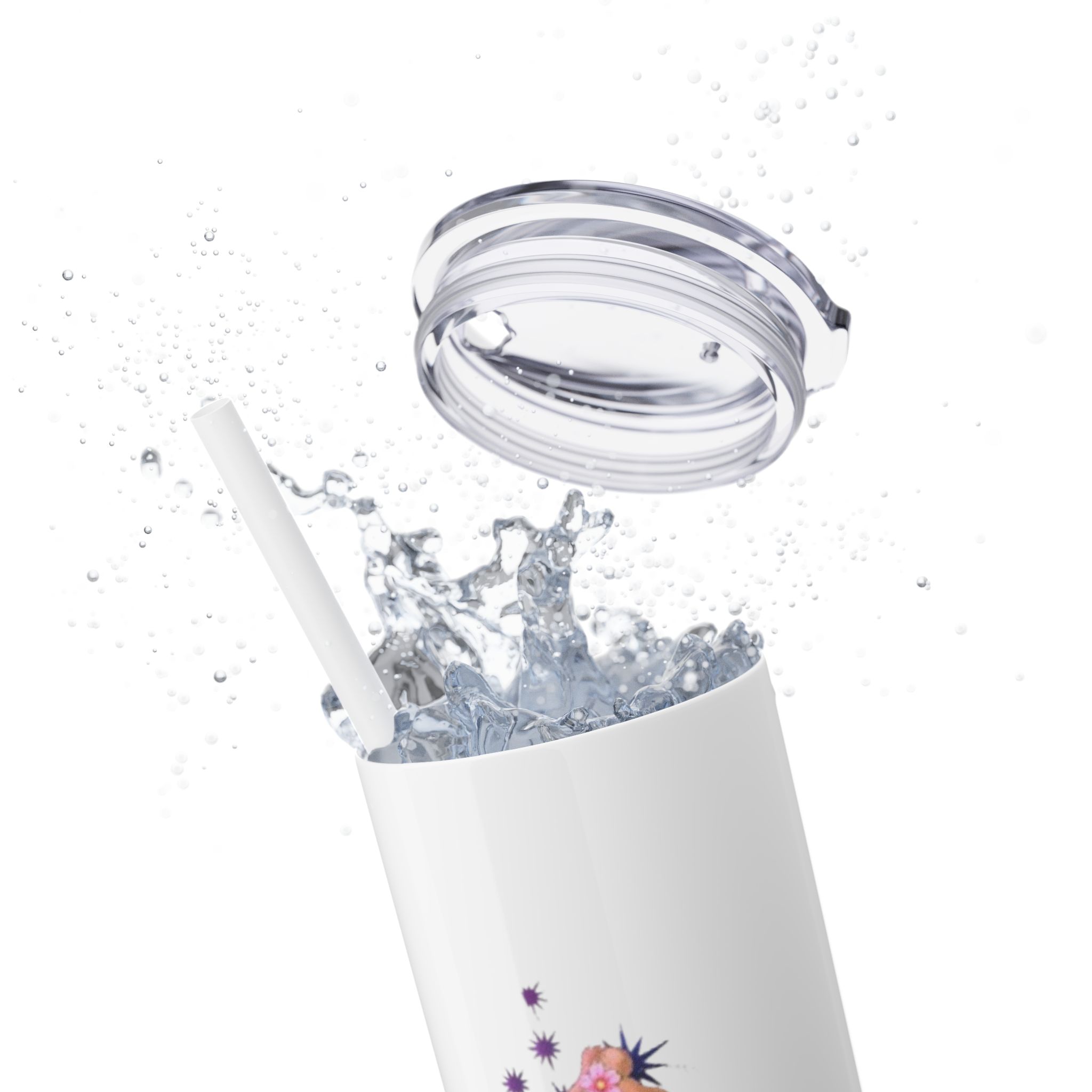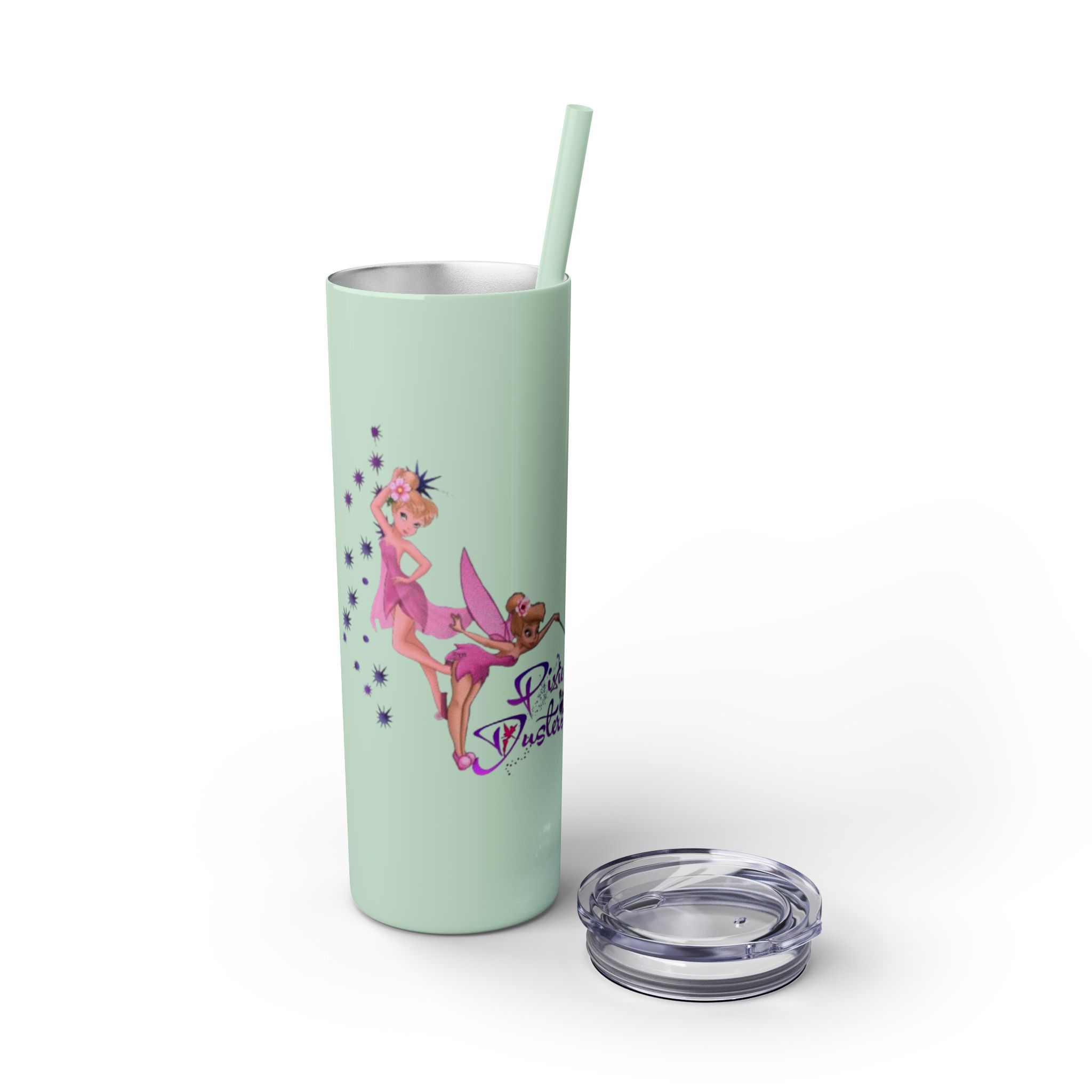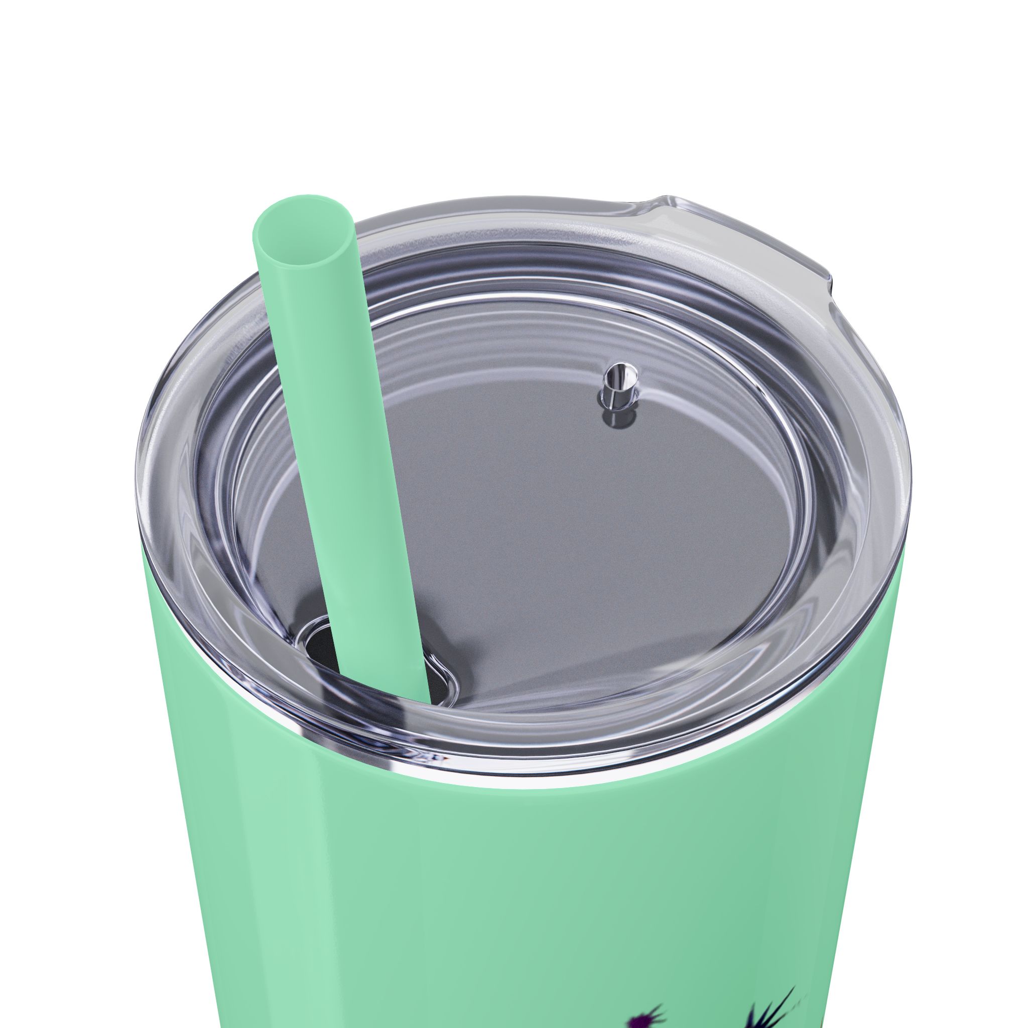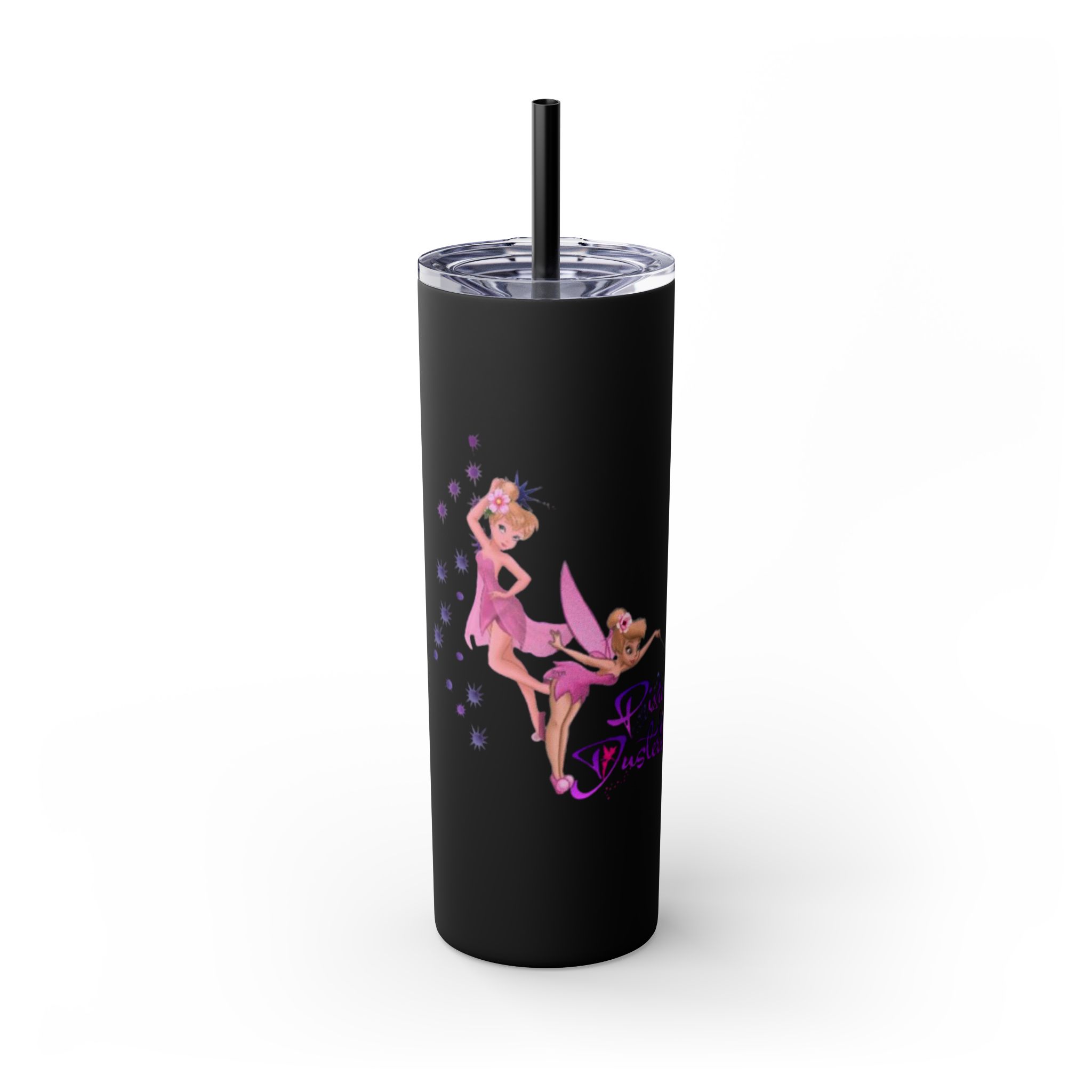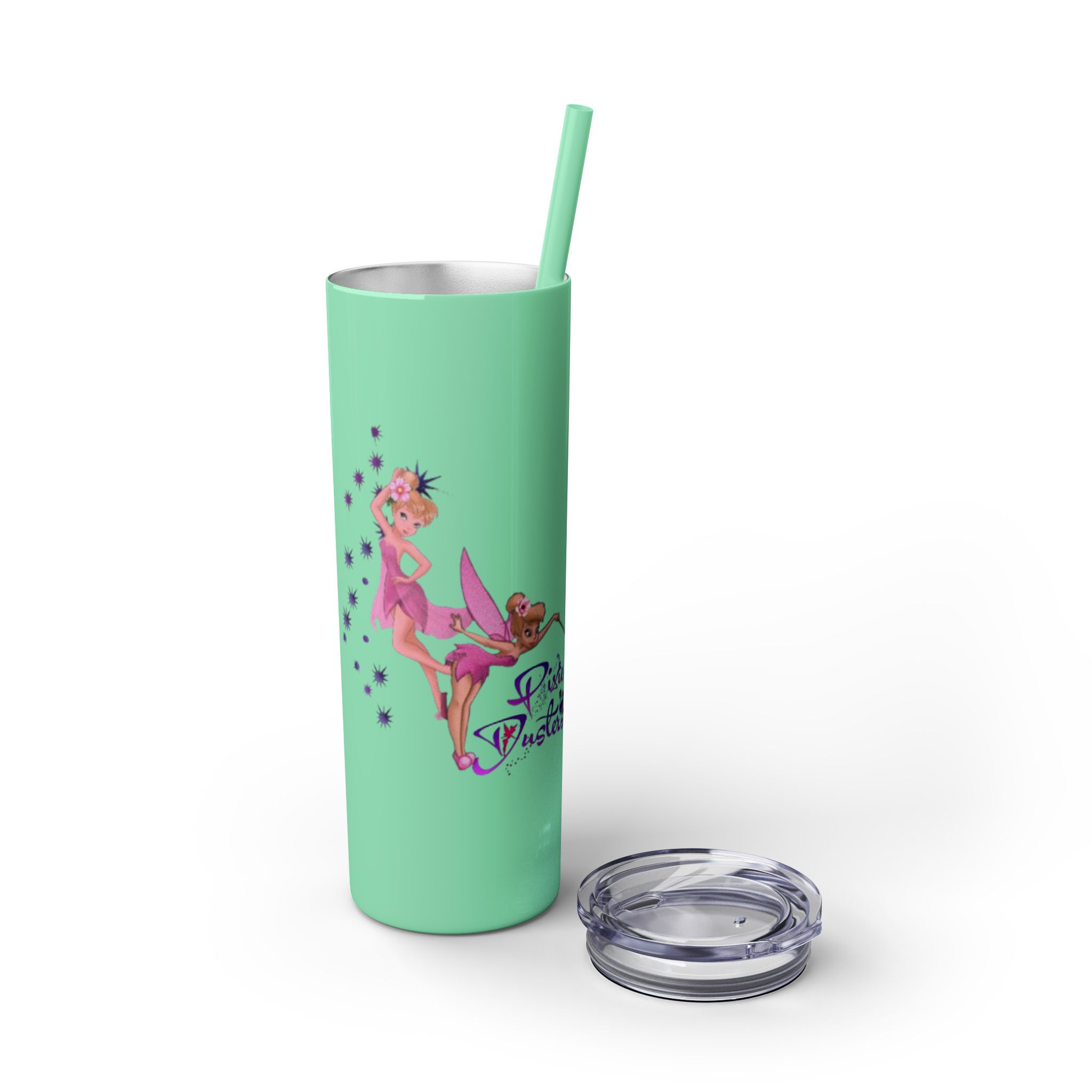 Slim, stainless steel tumbler wrapped in bright, playful artwork that brings a little sparkle to everyday sips. The tapered 20oz design slides easily into cup holders and bags, while double-wall insulation keeps drinks cold for up to 24 hours or warm for up to 12. A clear press-on lid and color-matching straw make sipping on the go simple and spill-conscious. Lightweight and durable, the tumbler’s matte or glossy powder-coated exterior holds vibrant printed colors true, and the slim profile is made for commuters, dancers, or anyone who loves a little retro-glam in their routine. Hand wash to preserve the print and finish.
