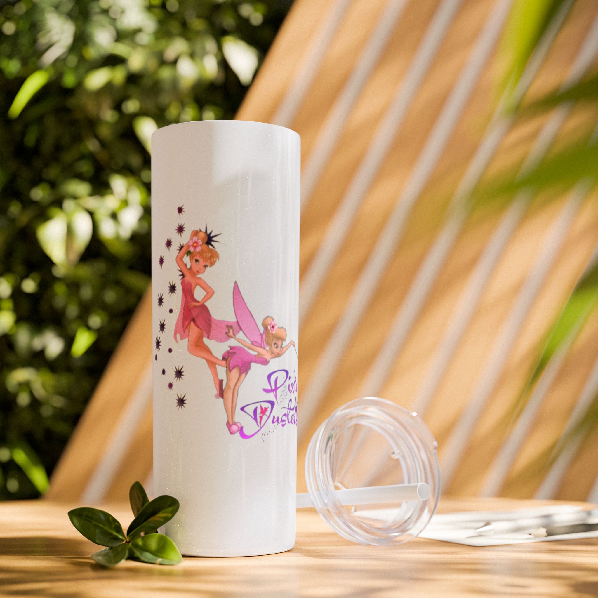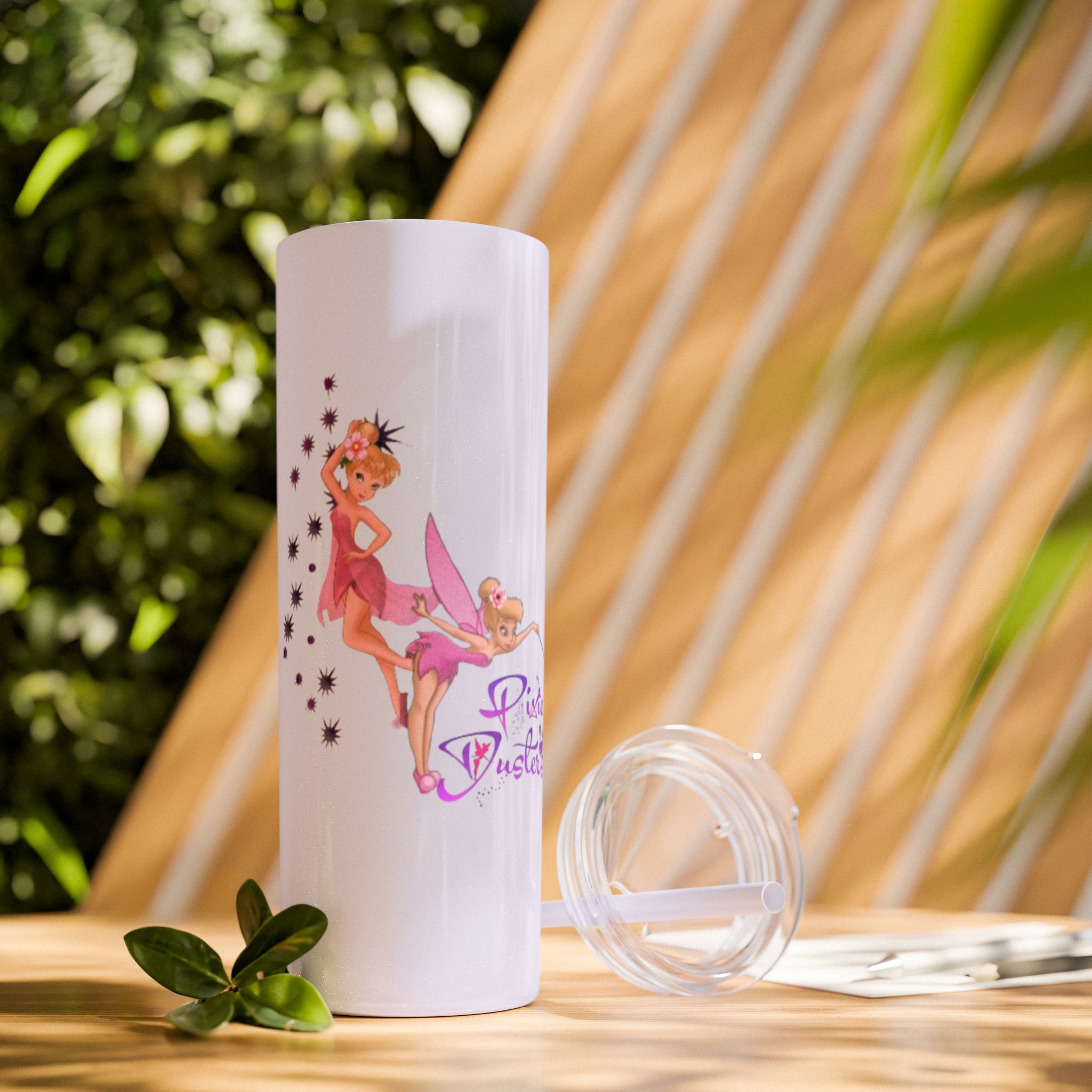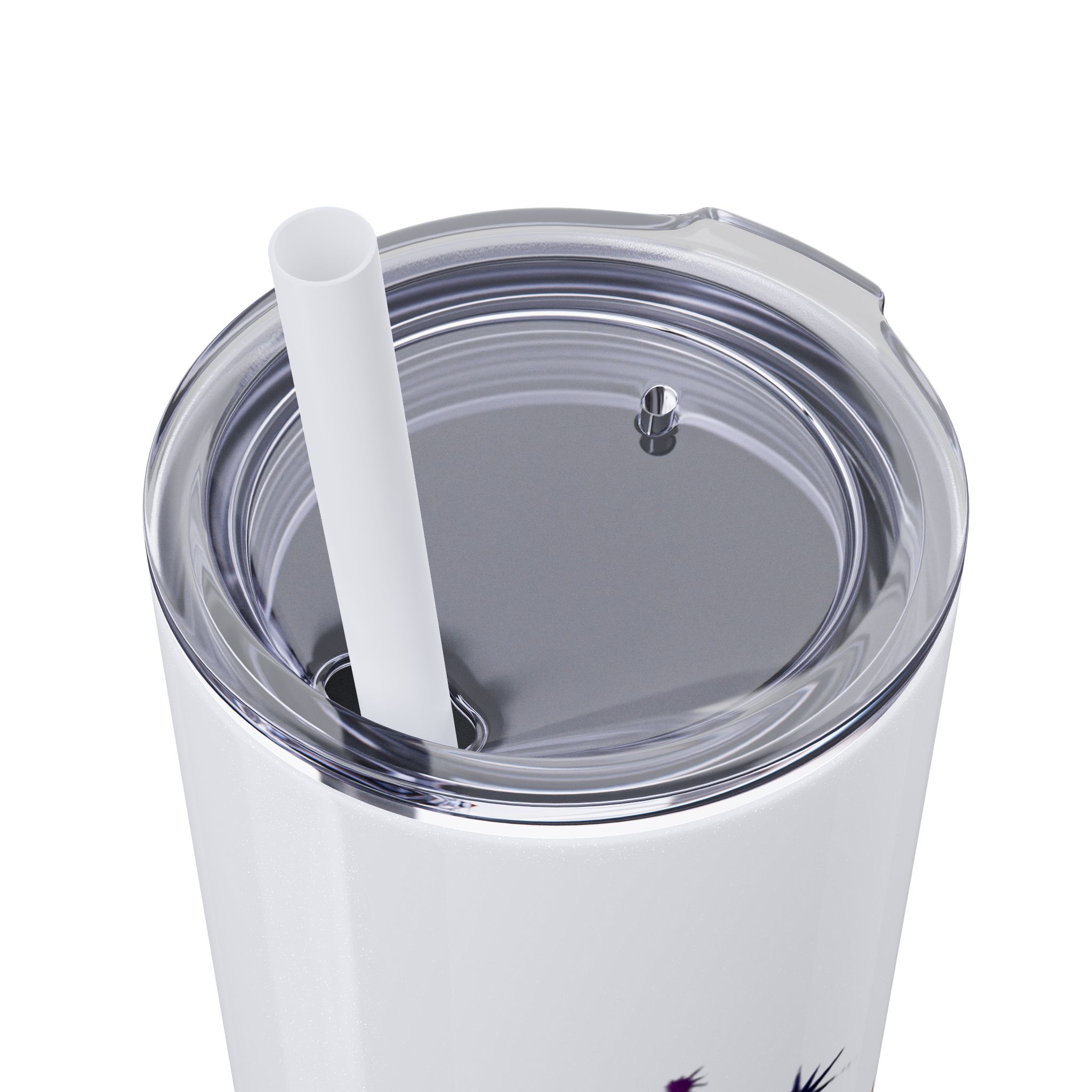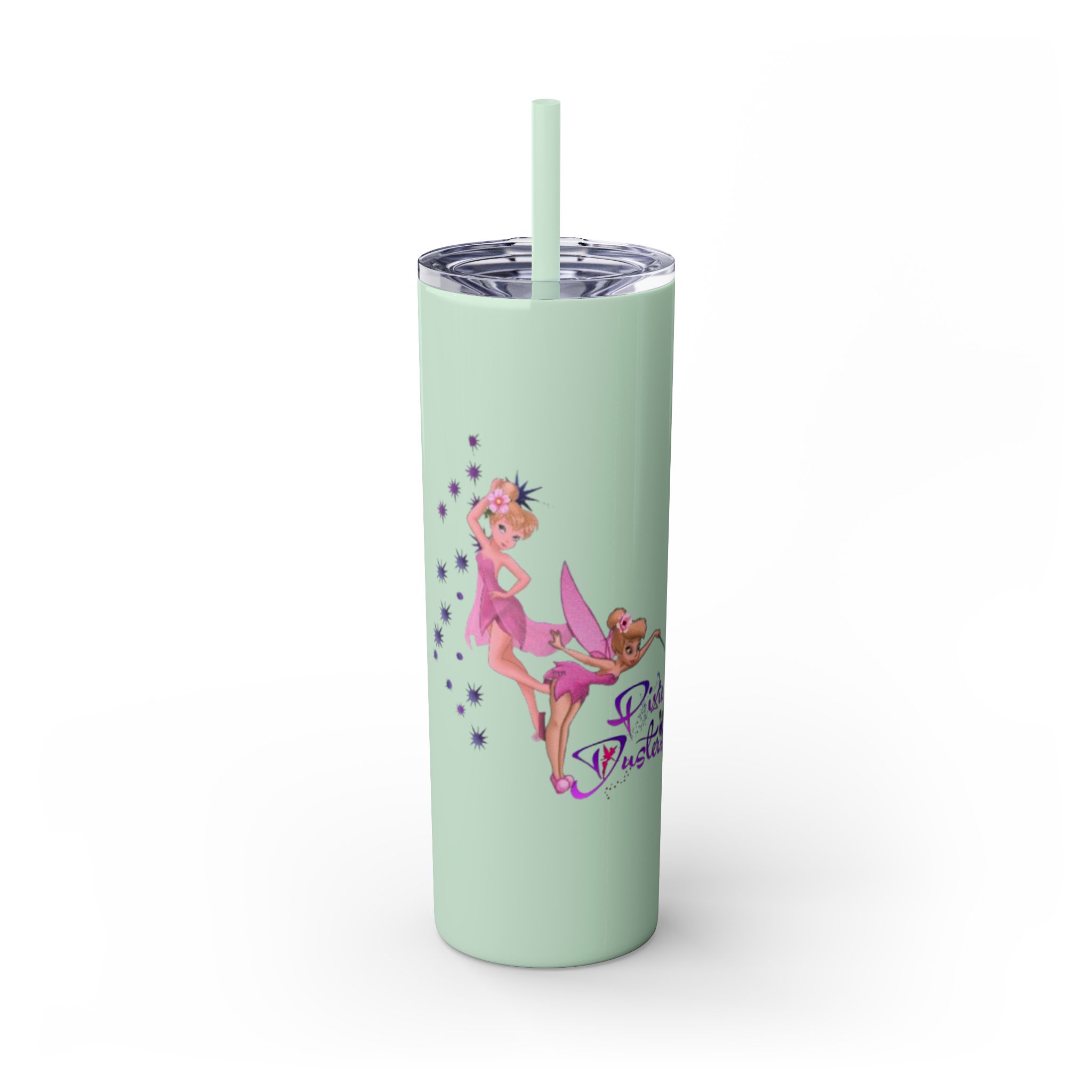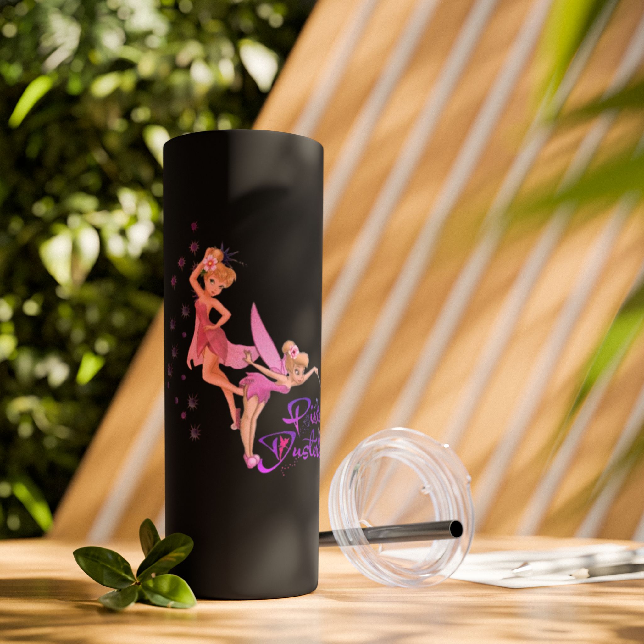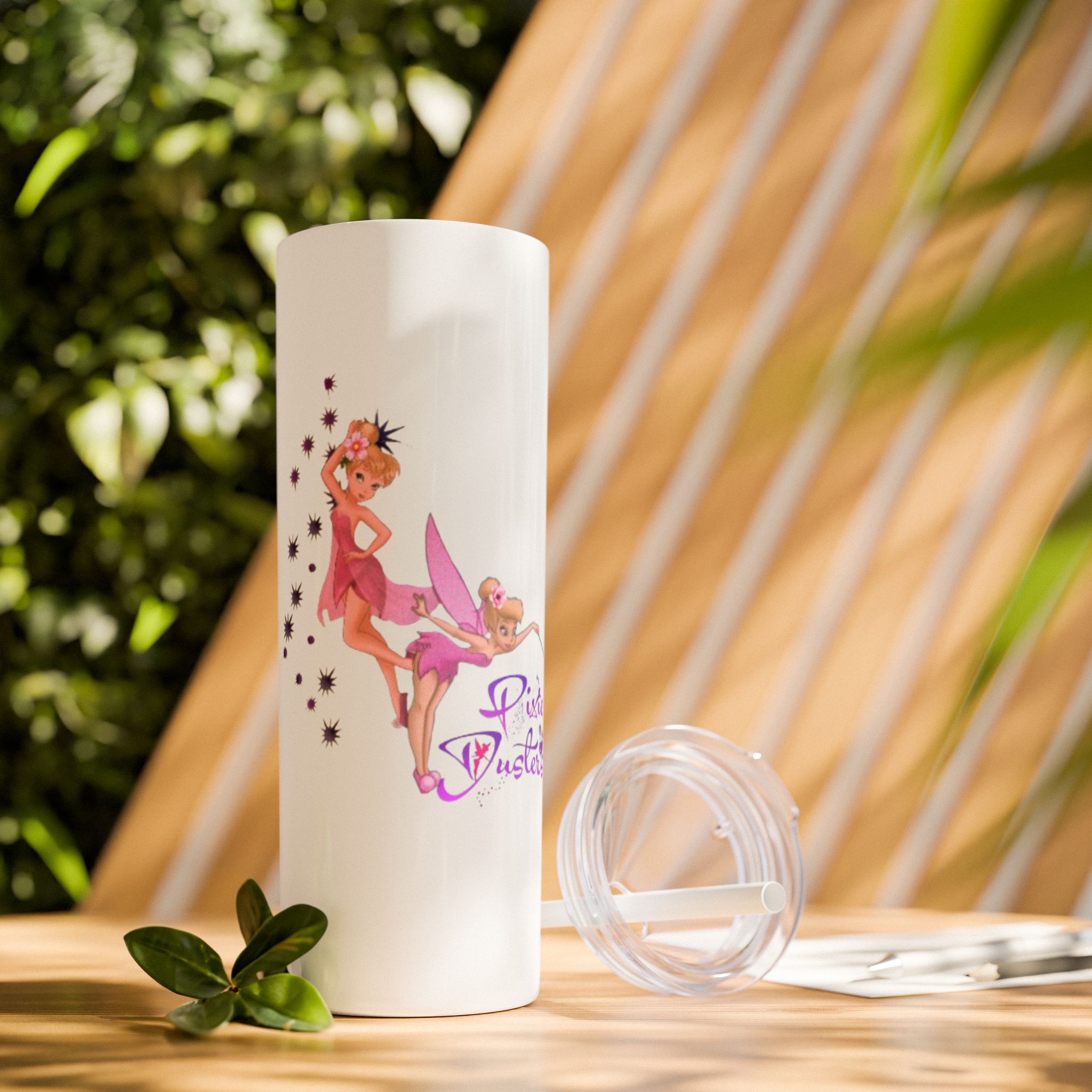 Slim, stainless steel tumbler wrapped in bright, playful artwork that brings a little sparkle to everyday sips. The tapered 20oz design slides easily into cup holders and bags, while double-wall insulation keeps drinks cold for up to 24 hours or warm for up to 12. A clear press-on lid and color-matching straw make sipping on the go simple and spill-conscious. Lightweight and durable, the tumbler’s matte or glossy powder-coated exterior holds vibrant printed colors true, and the slim profile is made for commuters, dancers, or anyone who loves a little retro-glam in their routine. Hand wash to preserve the print and finish.