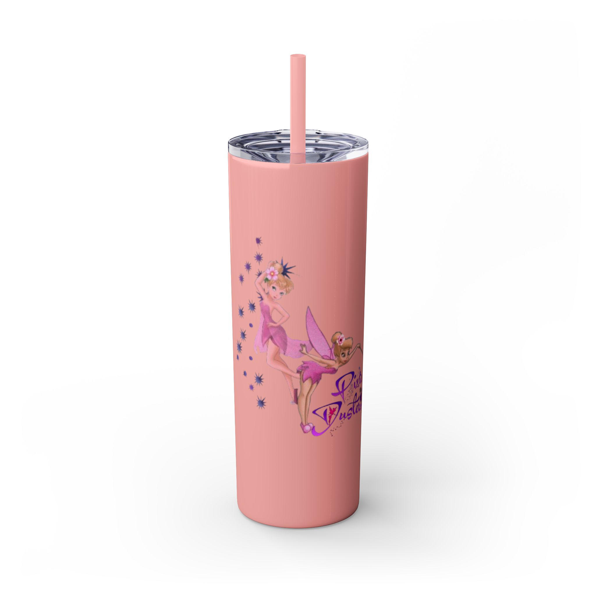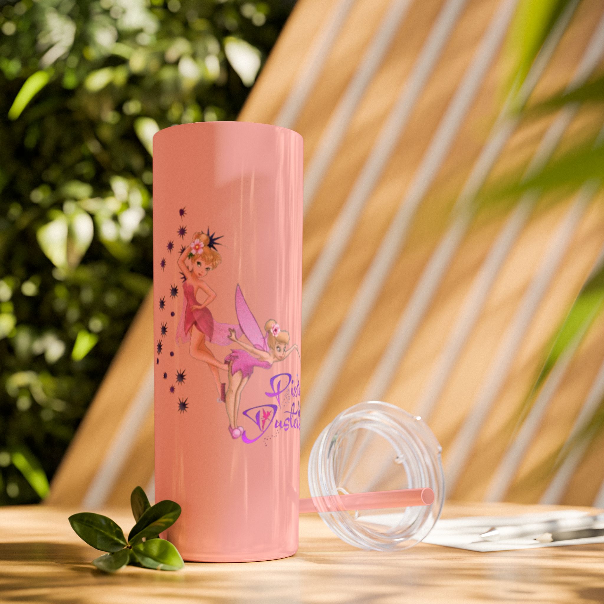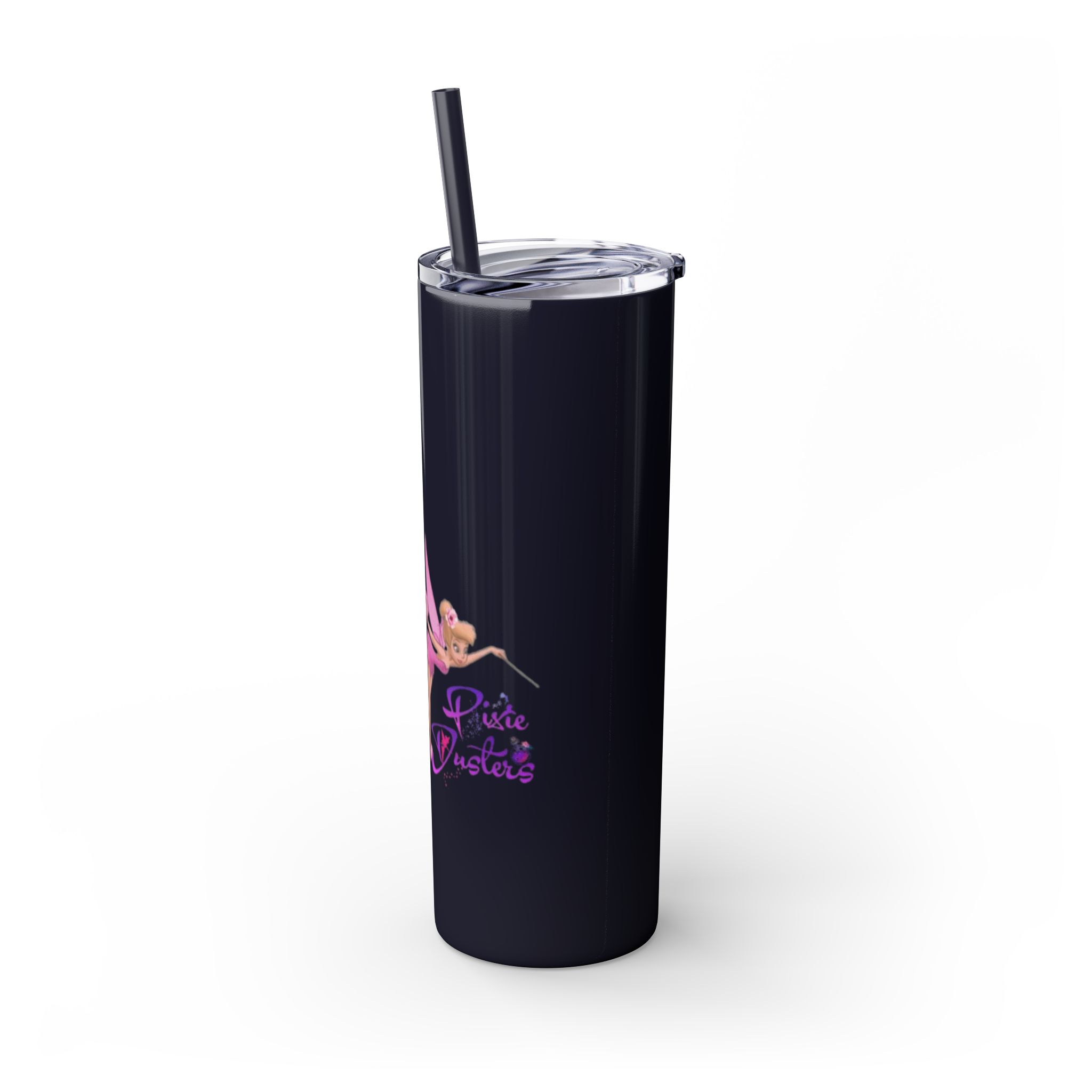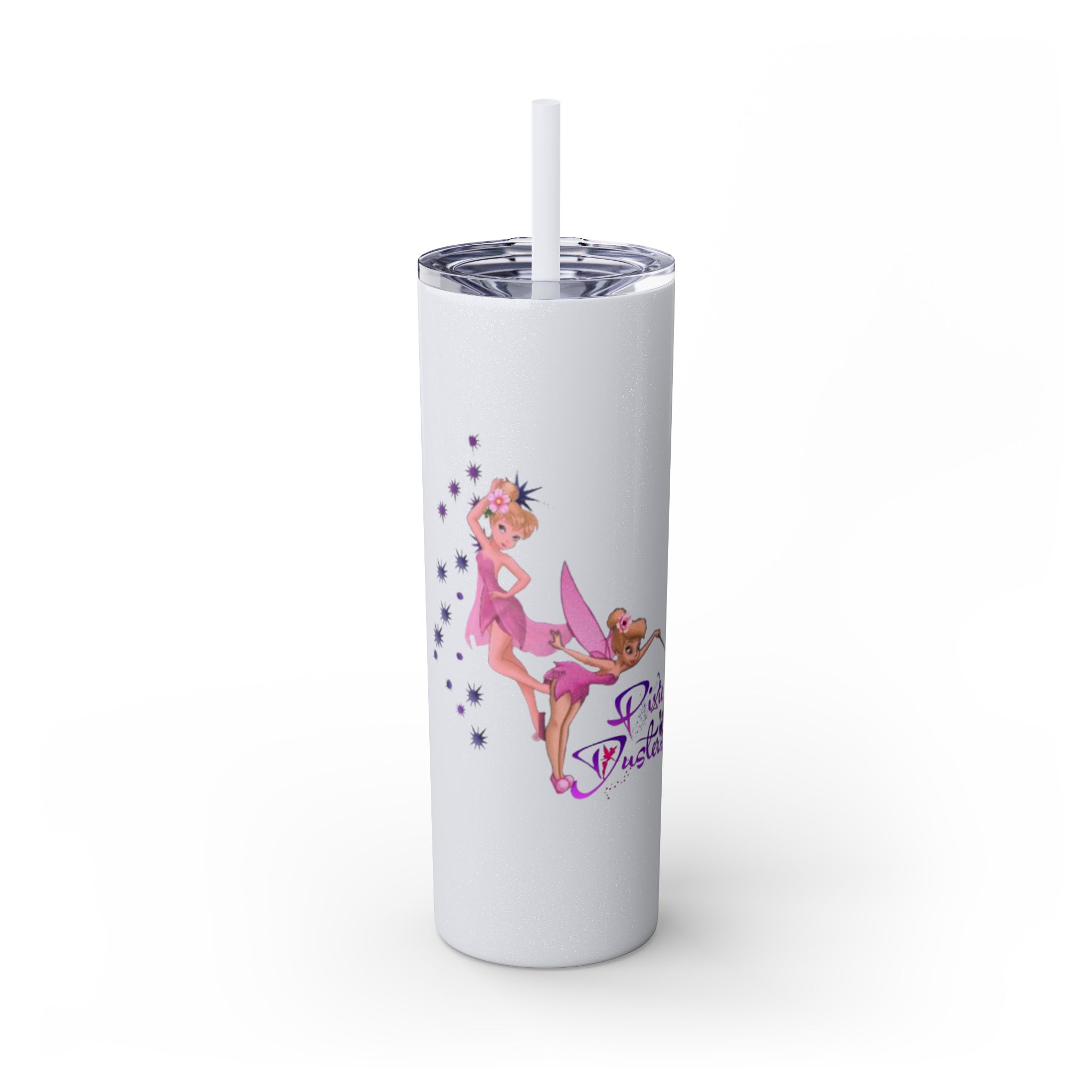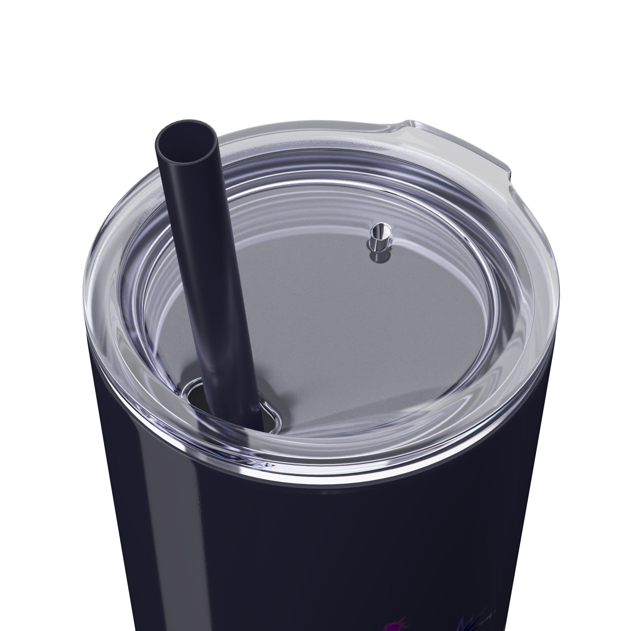 Slim, stainless steel tumbler wrapped in bright, playful artwork that brings a little sparkle to everyday sips. The tapered 20oz design slides easily into cup holders and bags, while double-wall insulation keeps drinks cold for up to 24 hours or warm for up to 12. A clear press-on lid and color-matching straw make sipping on the go simple and spill-conscious. Lightweight and durable, the tumbler’s matte or glossy powder-coated exterior holds vibrant printed colors true, and the slim profile is made for commuters, dancers, or anyone who loves a little retro-glam in their routine. Hand wash to preserve the print and finish.