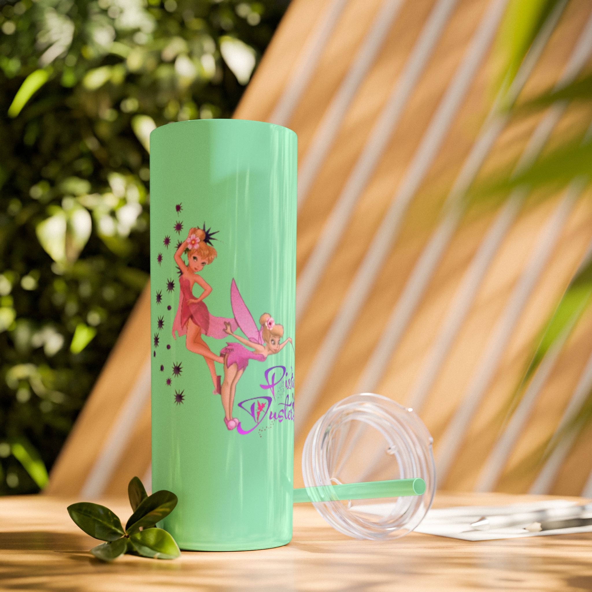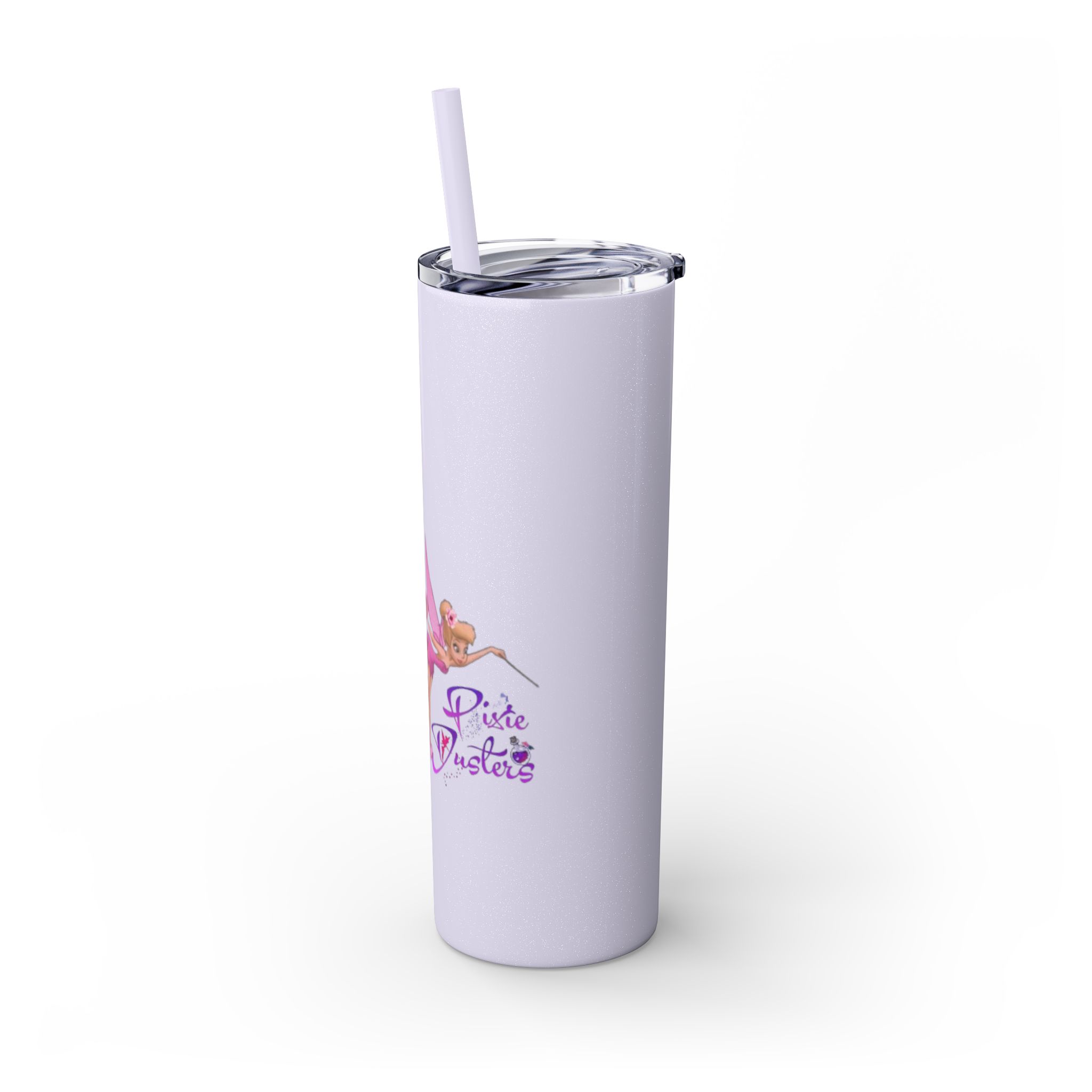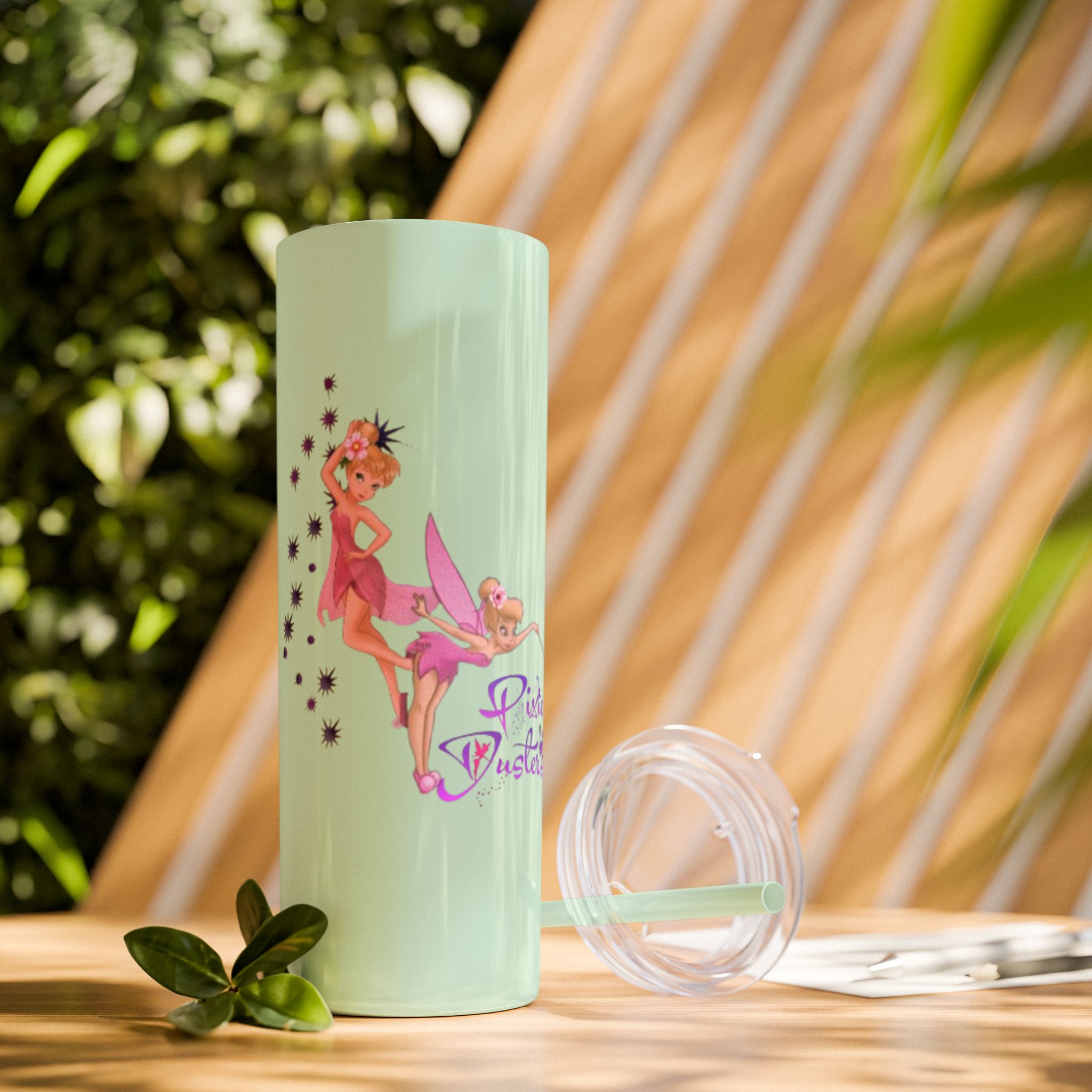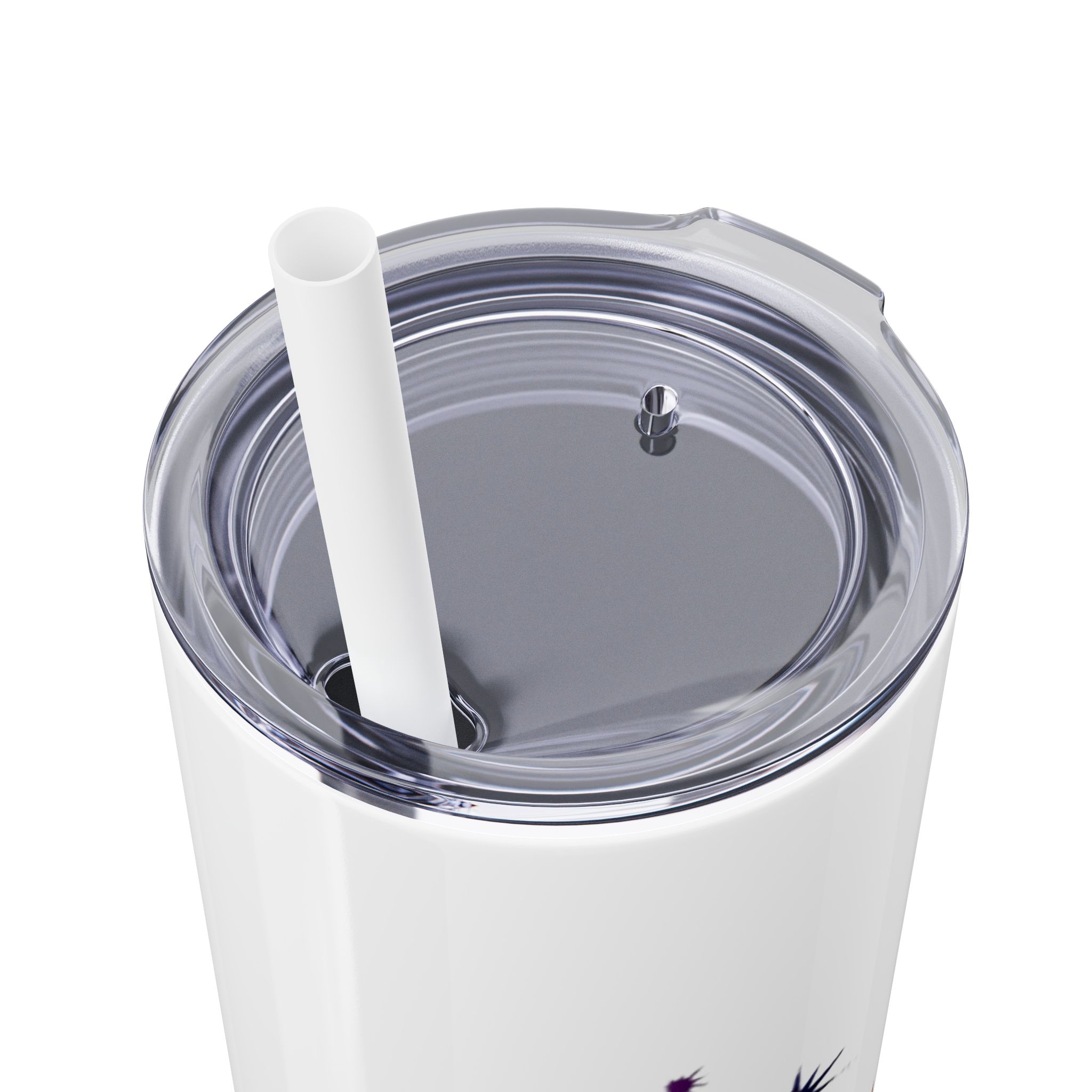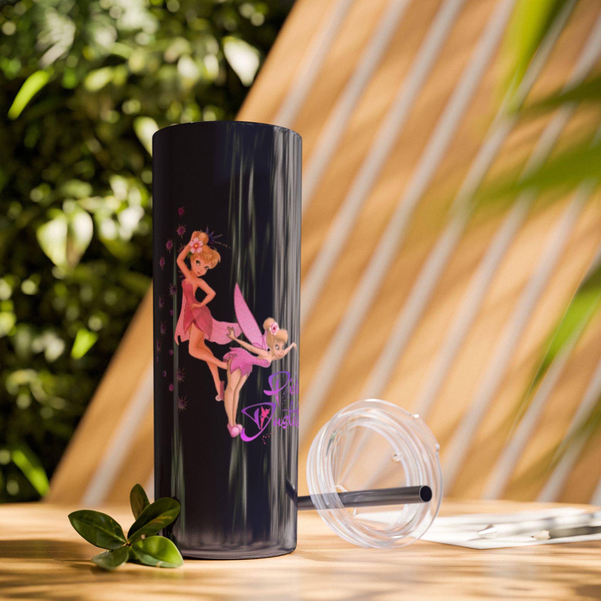 Slim, stainless steel tumbler wrapped in bright, playful artwork that brings a little sparkle to everyday sips. The tapered 20oz design slides easily into cup holders and bags, while double-wall insulation keeps drinks cold for up to 24 hours or warm for up to 12. A clear press-on lid and color-matching straw make sipping on the go simple and spill-conscious. Lightweight and durable, the tumbler’s matte or glossy powder-coated exterior holds vibrant printed colors true, and the slim profile is made for commuters, dancers, or anyone who loves a little retro-glam in their routine. Hand wash to preserve the print and finish.