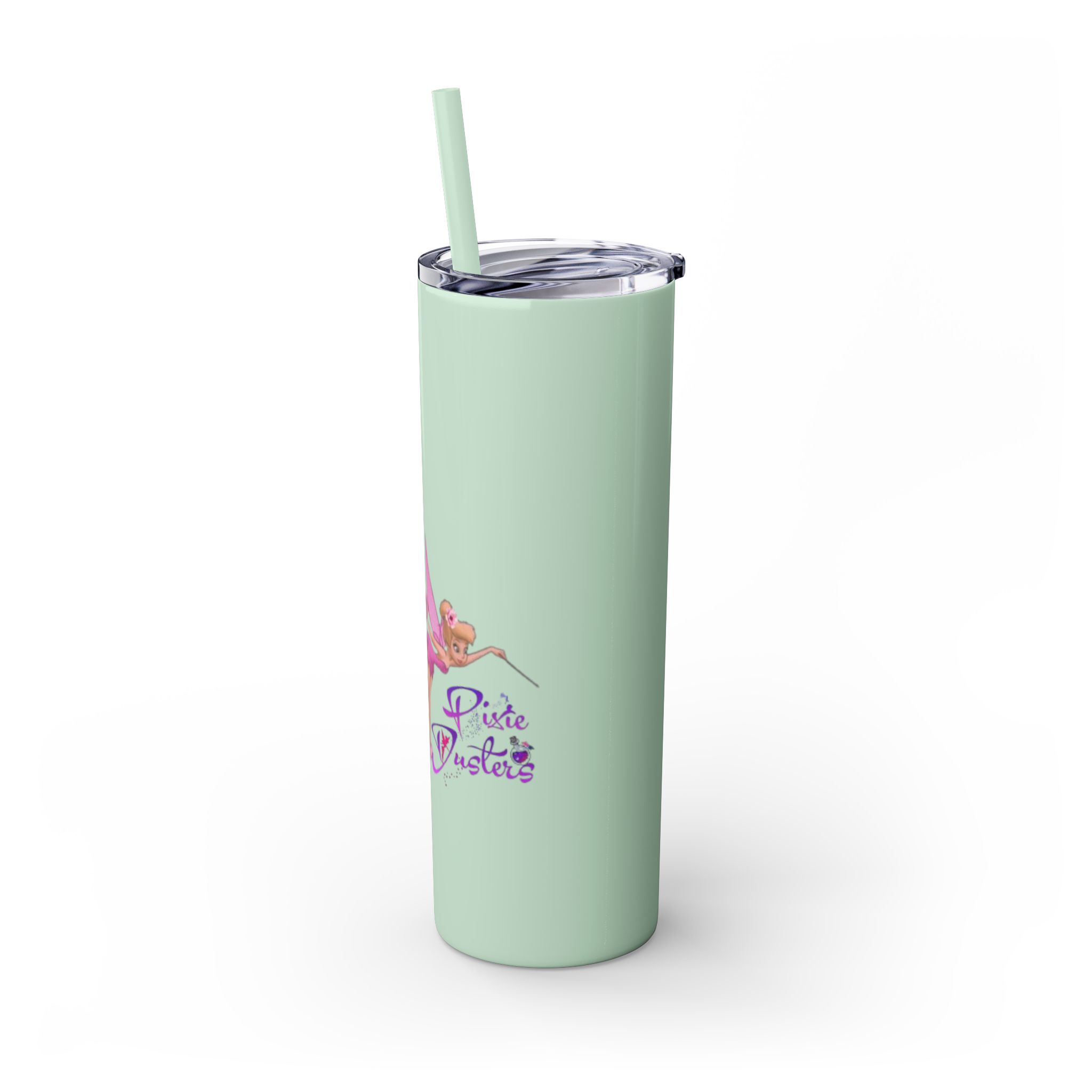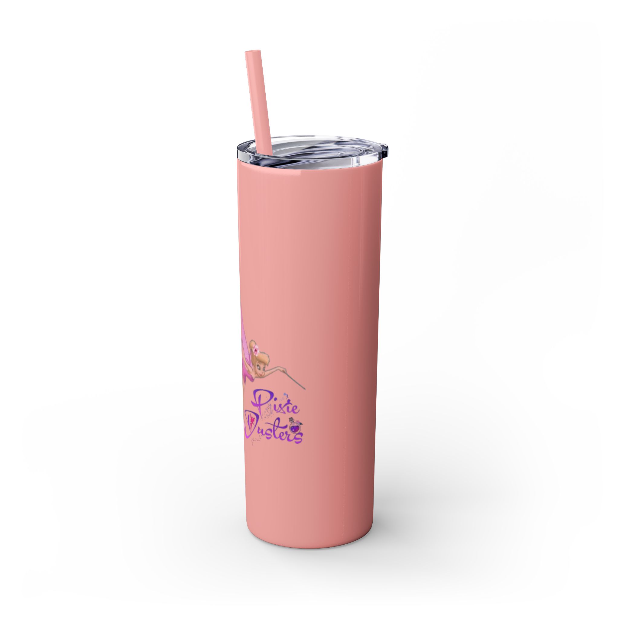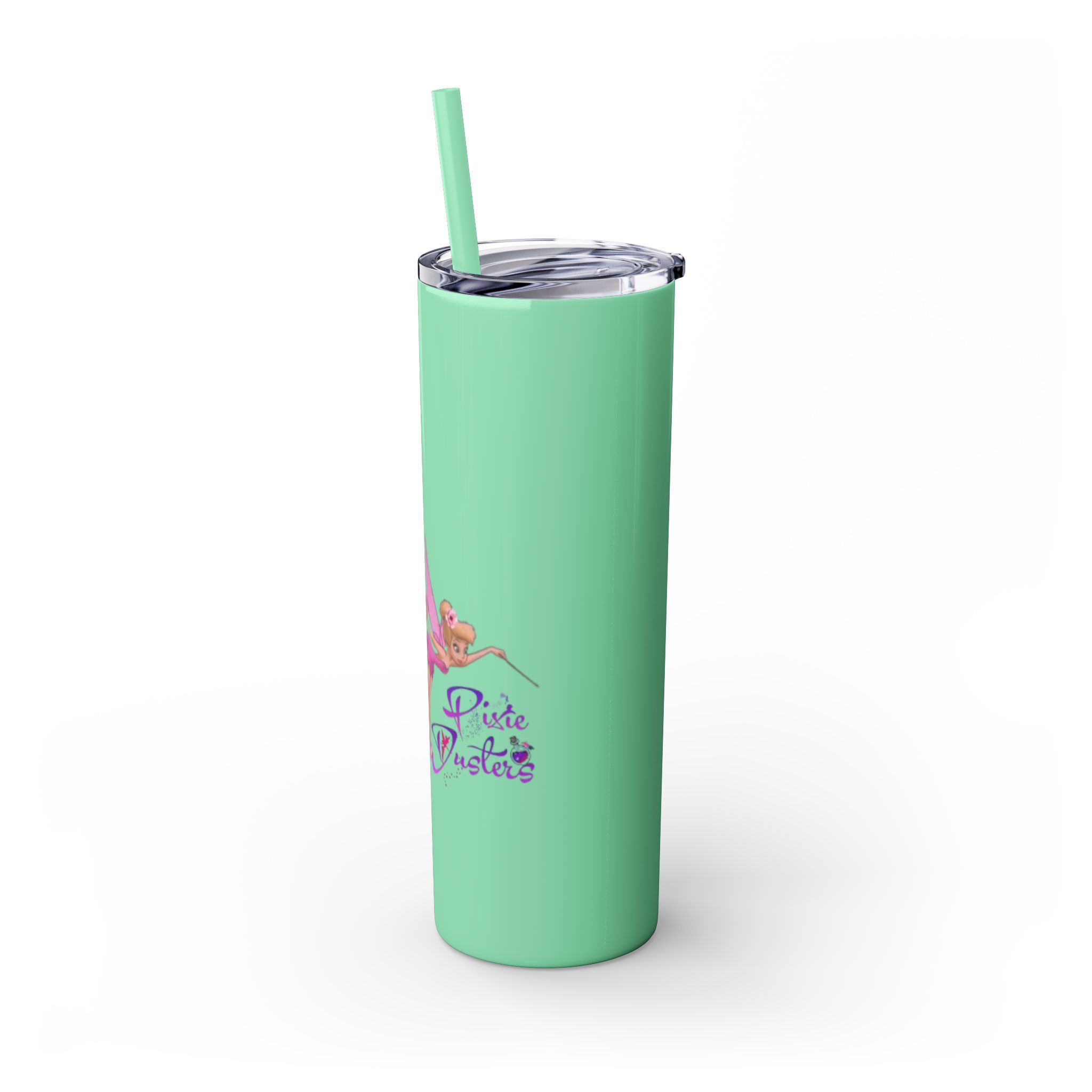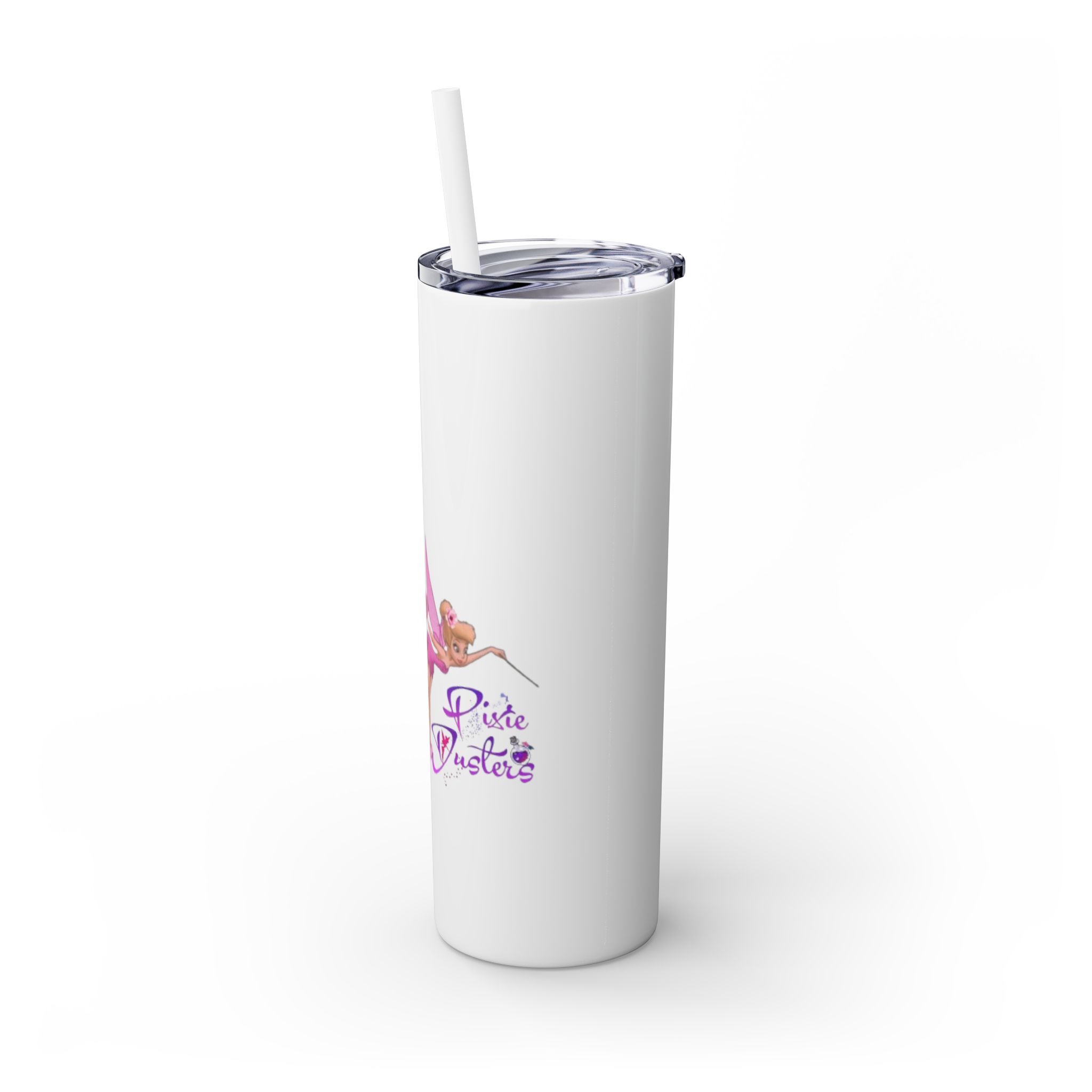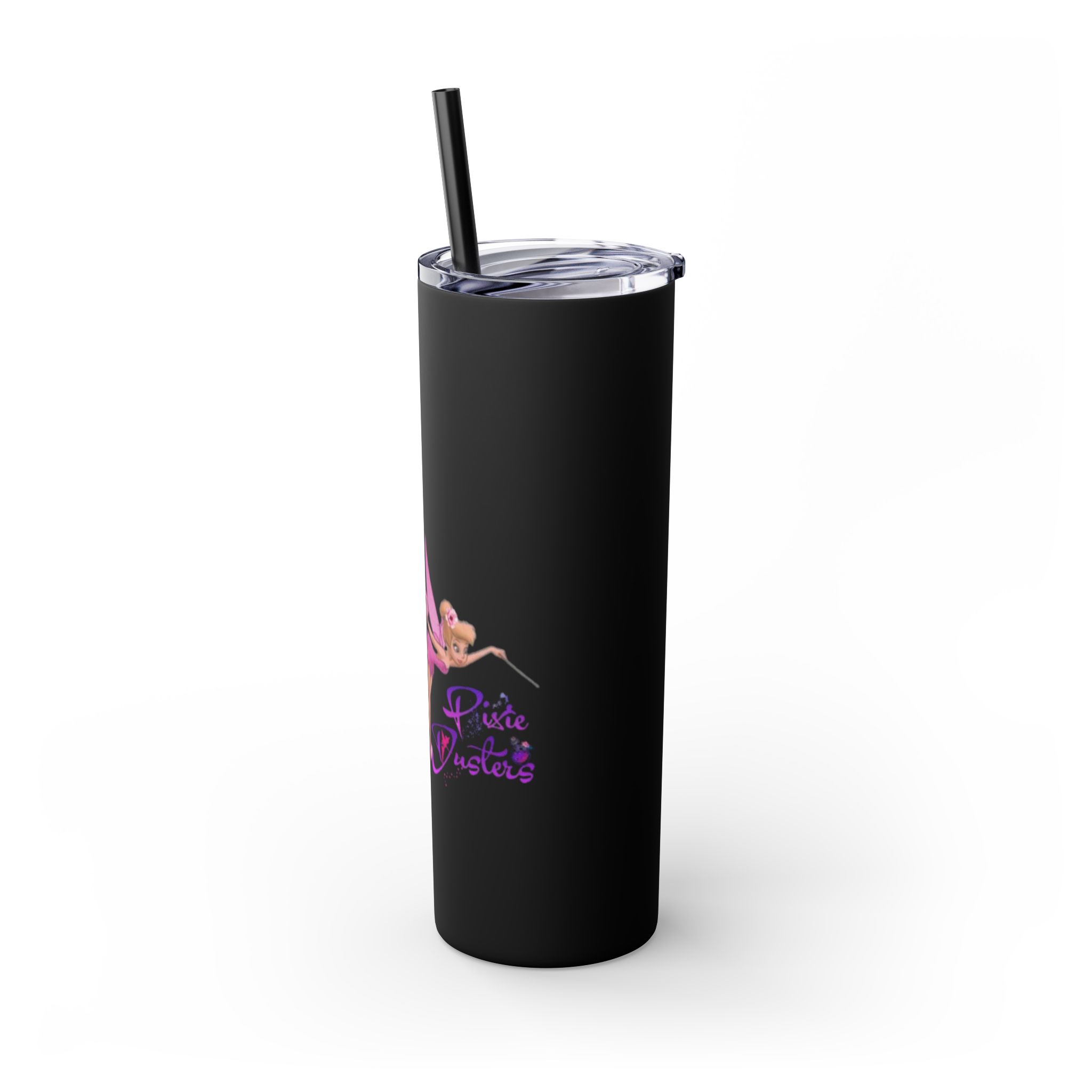 Slim, stainless steel tumbler wrapped in bright, playful artwork that brings a little sparkle to everyday sips. The tapered 20oz design slides easily into cup holders and bags, while double-wall insulation keeps drinks cold for up to 24 hours or warm for up to 12. A clear press-on lid and color-matching straw make sipping on the go simple and spill-conscious. Lightweight and durable, the tumbler’s matte or glossy powder-coated exterior holds vibrant printed colors true, and the slim profile is made for commuters, dancers, or anyone who loves a little retro-glam in their routine. Hand wash to preserve the print and finish.