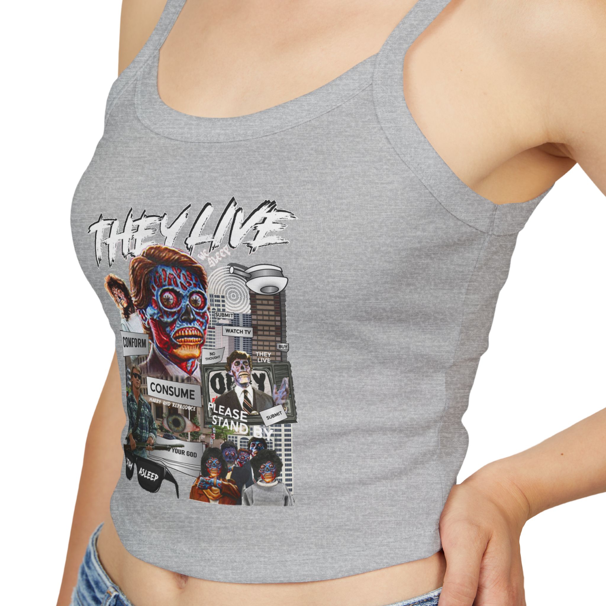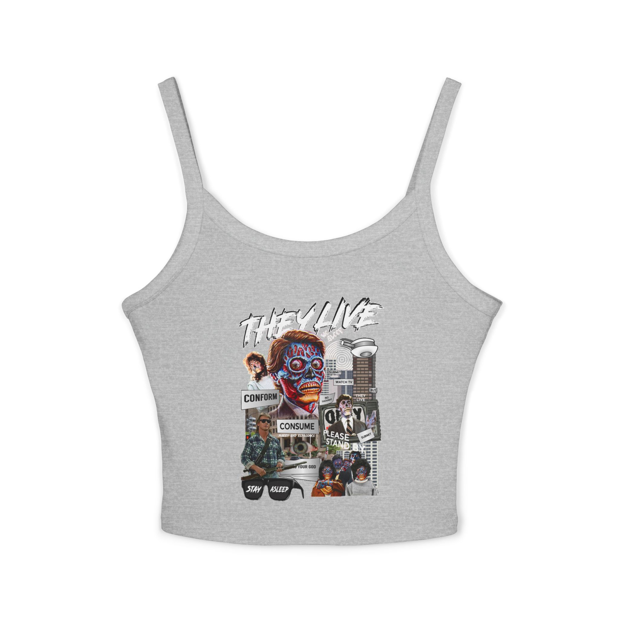 This fitted spaghetti-strap tank blends bold street collage art with everyday wearability. The mid-length cut layers cleanly under jackets or stands on its own when the day calls for something light and statement-making. Thick straps and a soft Airlume-combed cotton blend keep the feel luxurious against skin while the DTF-printed graphic holds crisp detail and vibrant color. Ethically produced in a WRAP- and FLA-partnered facility, the tank brings edgy, urban visuals together with responsibly made construction — a wearable piece for days when you want your outfit to speak first.
