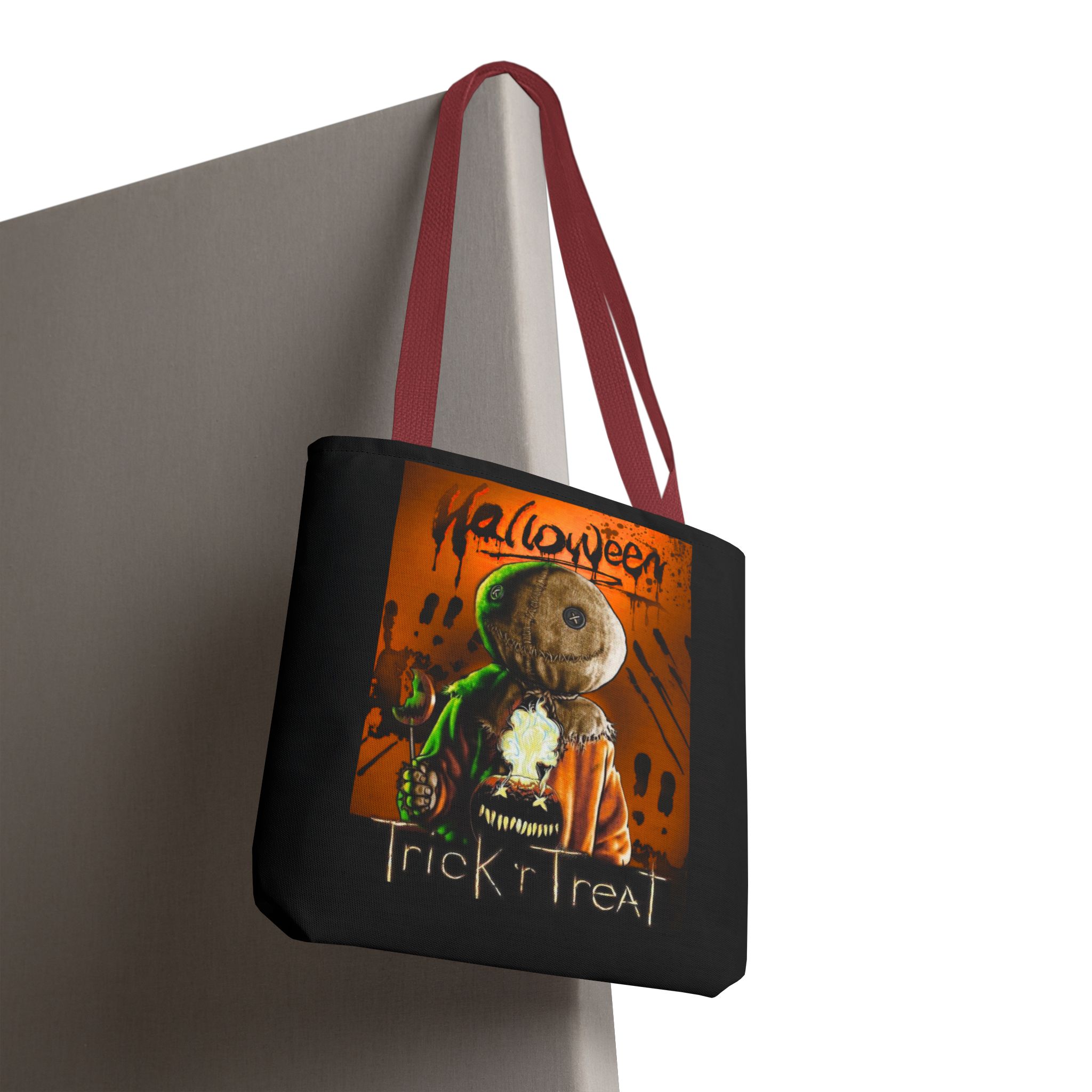 Carry a little spooky joy with you every October night. This roomy tote features a hand-drawn, vintage-style Halloween illustration: a stitched pumpkin-headed trick-or-treater holding a glowing jack-o’-lantern against a moody orange backdrop. The art feels like a familiar neighborhood legend—dusty porches, whispered “trick or treat” calls, and the thrill of collecting candy under streetlamp halos. Lightweight yet sturdy, the bag moves from door-to-door candy runs to autumn markets and late-night horror movie nights. It sits naturally over the shoulder and holds a costume, candy stash, or a stack of spooky paperbacks without losing shape. If you love low-light thrills, retro Halloween charm, and practical gear that still tells a story, this tote does the carrying while you make the memories.