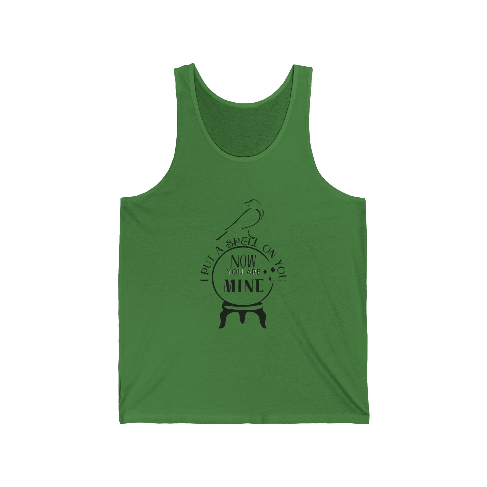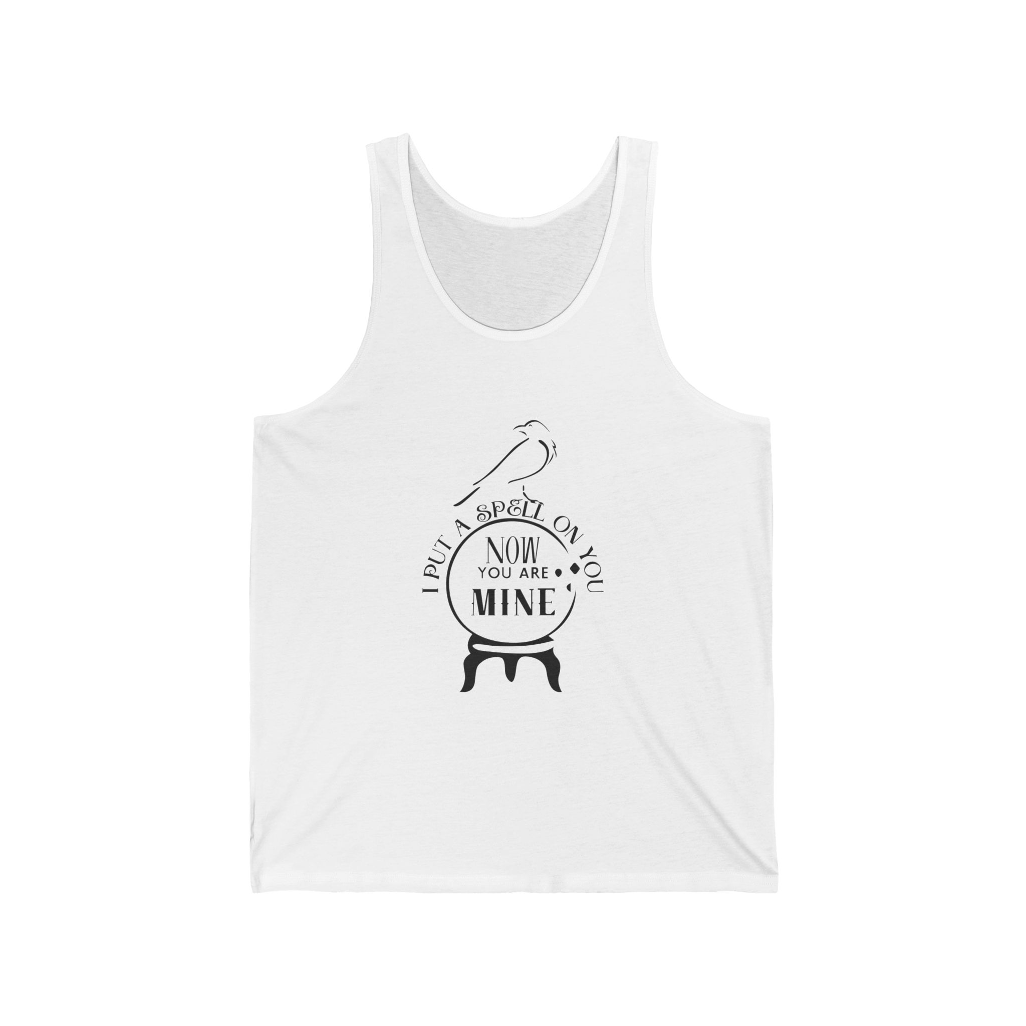 This lightweight tank carries a quiet, witchy charm — a simple crystal ball motif beneath a raven silhouette and the words “Now You Are Mine.” Soft, airy fabric drapes easily over the body for warm-weather rituals, moonlit gatherings, or layered looks. It reads like a private talisman: subtle on the outside, intimate to the wearer. Wear it during tarot nights, wandering through folkloric markets, or curled up with a grimoires and tea. The retail fit and tear-away label keep the piece comfortable and fuss-free, letting the design be the focus while the tank moves with you throughout your day and evening routines.